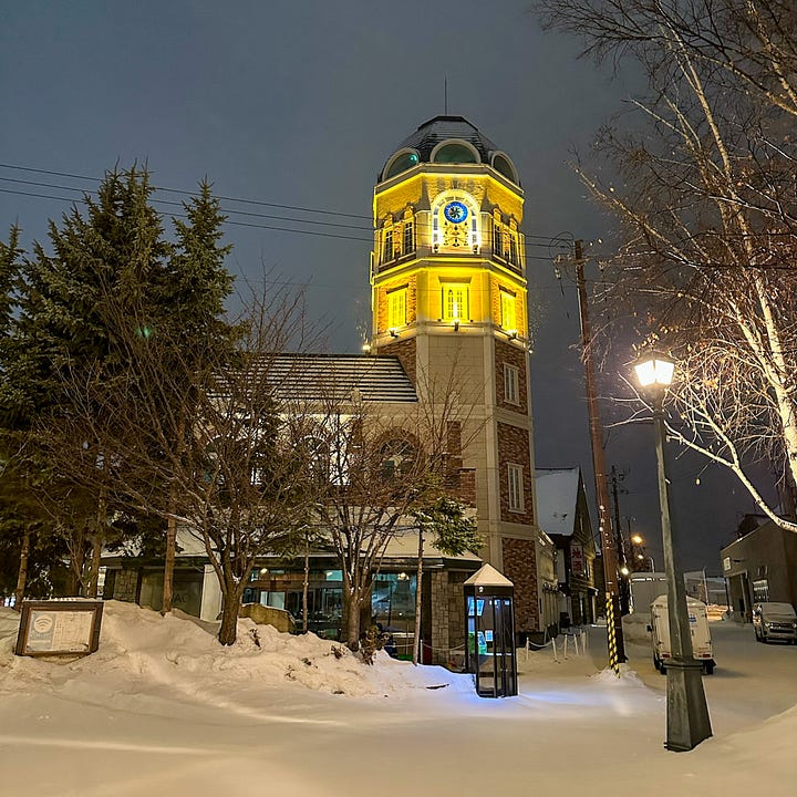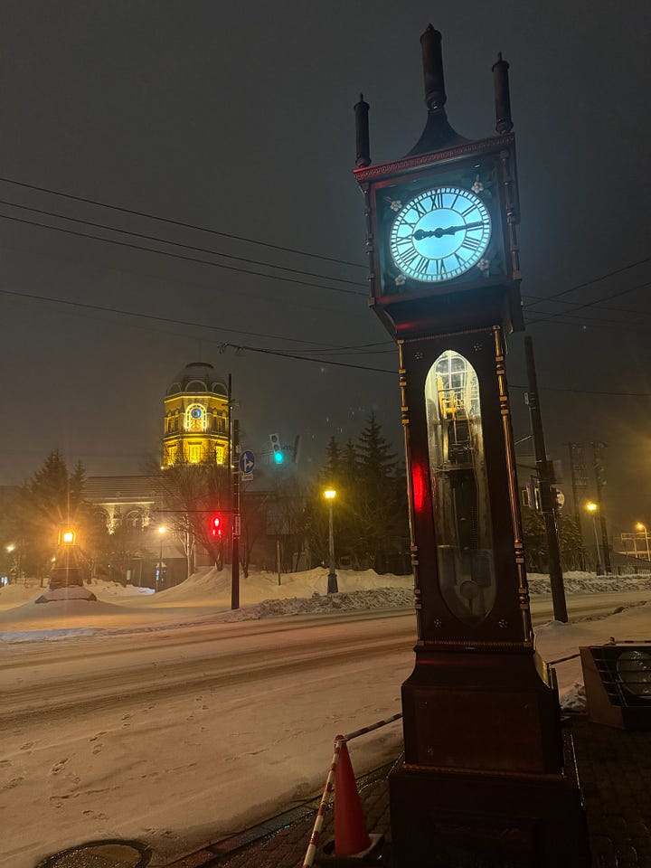 A small coastal city on the western shore of Hokkaido that is known for its fresh seafood, historic architecture from the Meiji era, and glass crafts. We only had 24 hours in this small city, but it had beautiful old industrial vibes that made me think of steampunk adventures. Clocktowers out of the 1800s, gaslit lamps, and street corner grandfather clocks. When we walked the streets, we would dip into little shops to view cute glass-blown tchotchkes.